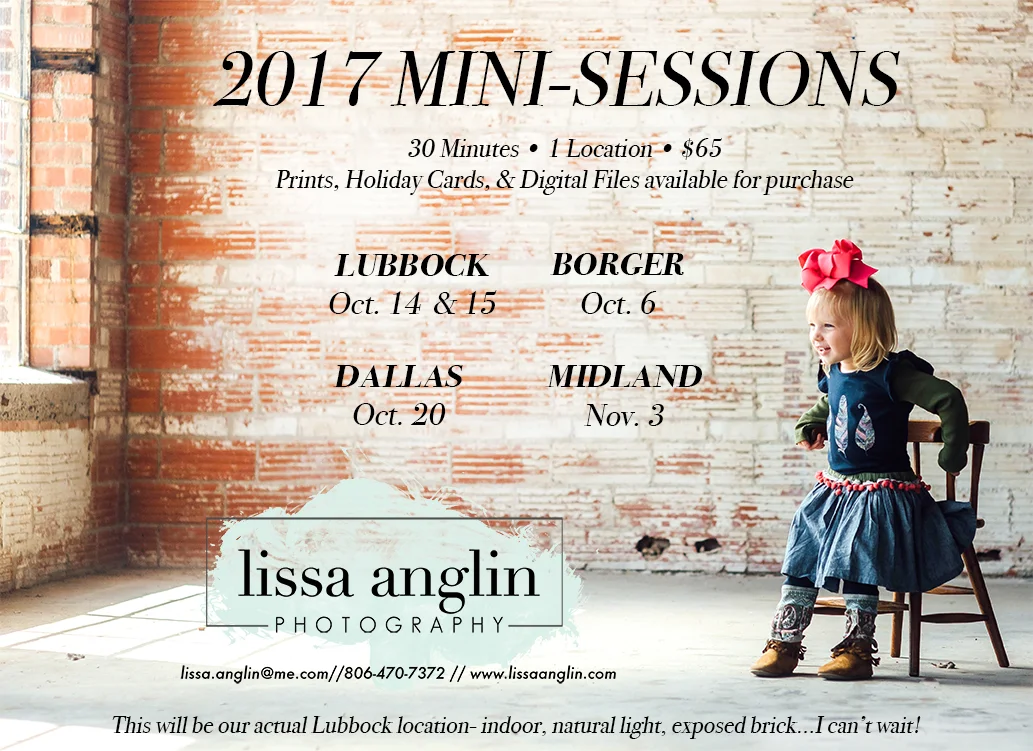 I'm excited to announce that my 2017 Mini-Session signups are live! These are special, once-a-year sessions I do that cater to families and kids- just in time for Christmas.