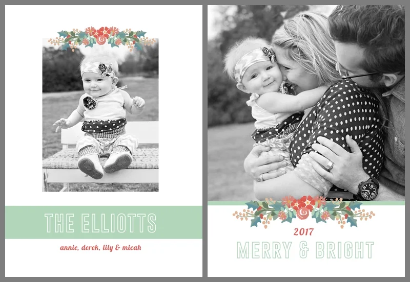 I love creating customized Christmas cards for my clients. We begin with one of the templates below, insert your photos (color or black and white), and customize the colors, text, and design to fit your needs!