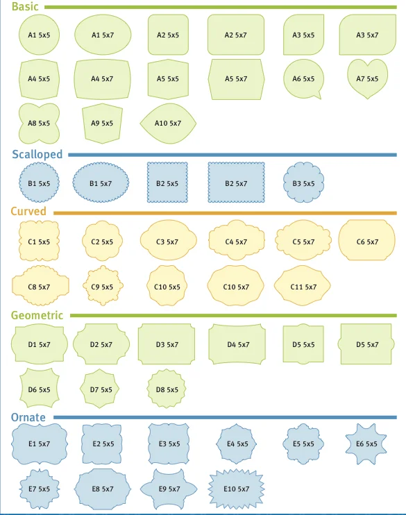 Any of these designs can be adapted to fit a postcard (2 sided) or folded card (4 sided). I'm also excited to offer them in boutique shapes! Here are a few examples of the unique shapes: