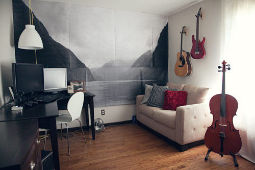 I like to keep an eclectic feel to our house and don’t like all the furniture to match, so I pulled in a wood side table with hairpin legs I already had and a wire Bertoia diamond chair (another crazy Craigslist find!).